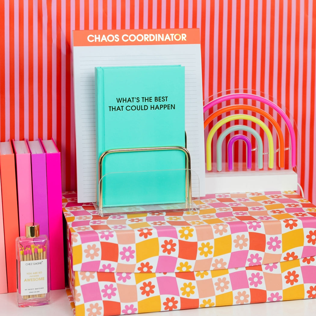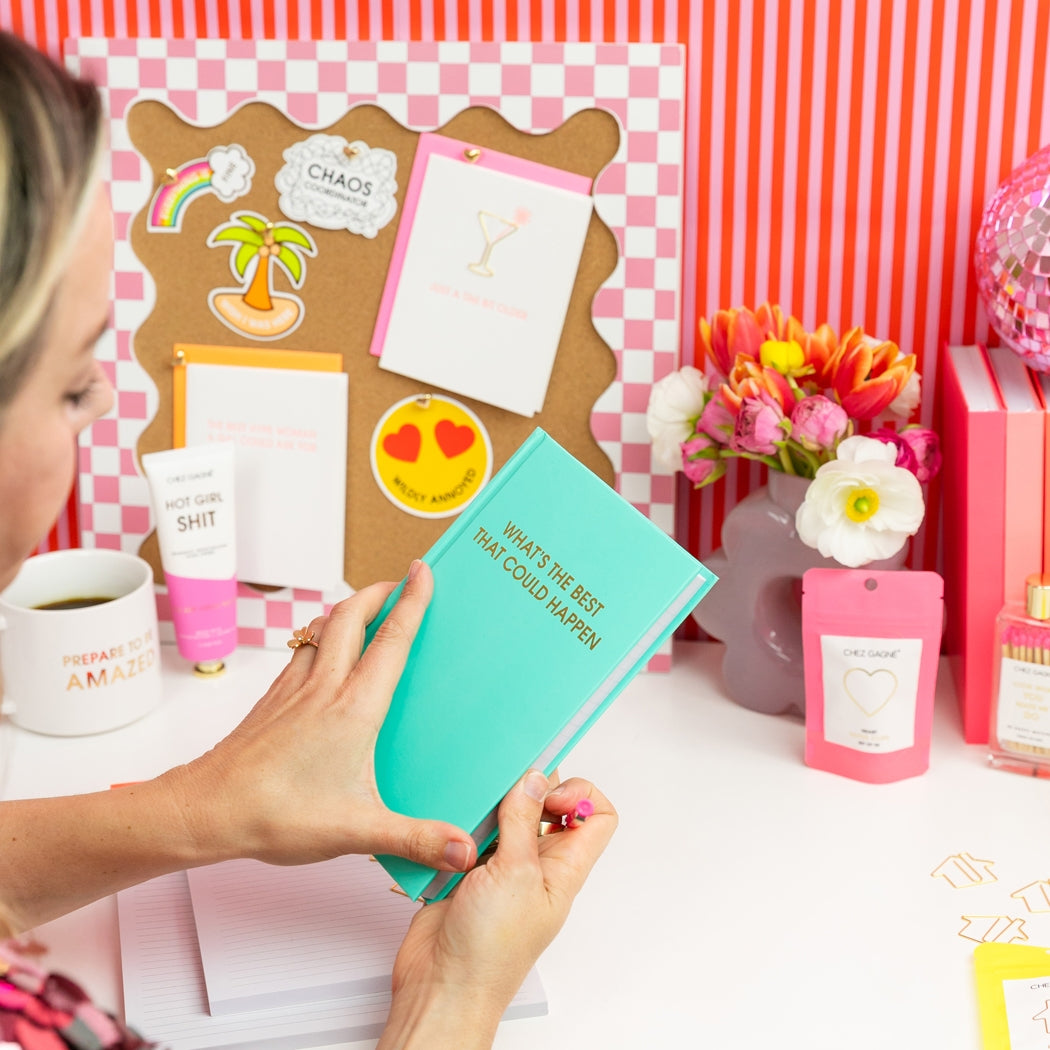 The What’s The Best That Could Happen Journal is a daily reminder to flip the script on overthinking and lean into optimism. With its calming aqua hardcover and luxe gold foil phrase, this lined journal inspires positivity while keeping note-taking, lists, and daily reflections fun and functional. Featuring 256 lined pages and a crisp white satin ribbon marker, this durable hardcover journal is built for everyday use. At under $25, it’s an affordable luxury that works beautifully as both a personal self-care tool and a thoughtful gift.