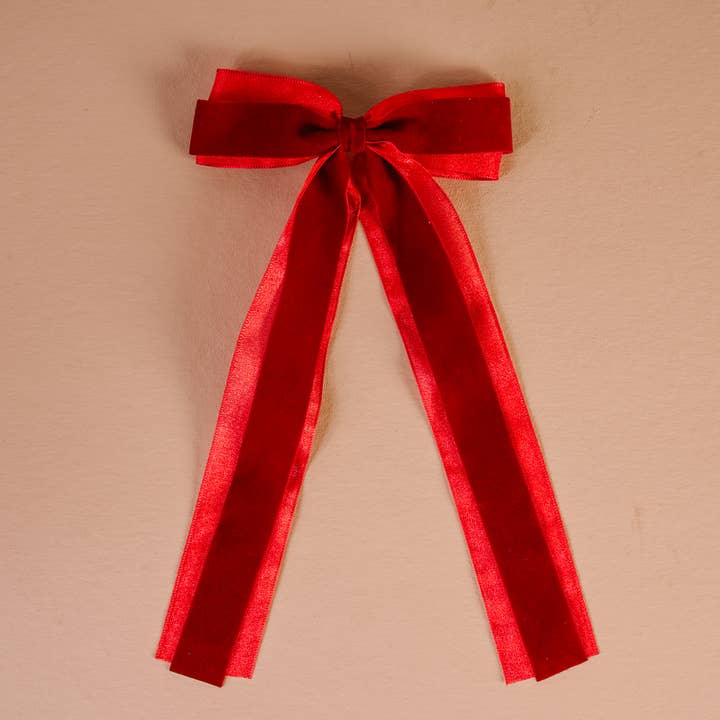 Elevate your everyday with this Velvet Luxe Layered Hair Bow—a modern take on timeless elegance! Designed with rich velvet ribbon and a delicate sheer underlay, this layered bow brings a polished finish to any hairstyle. Its sleek silhouette and luxe textures make it perfect for special occasions or everyday glam, while the gold barrette clip ensures a secure, comfortable hold.