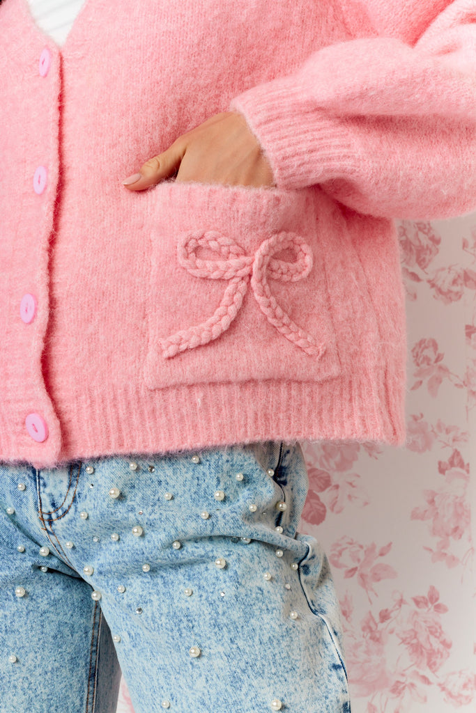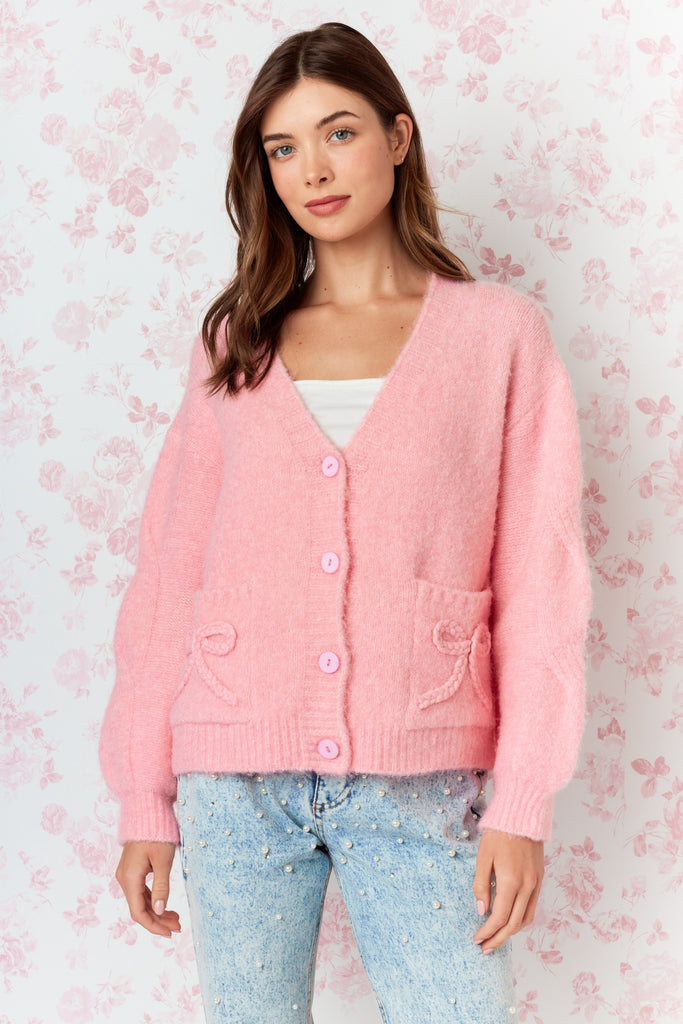 Bow Belle Cardigan Sweater - Pink
